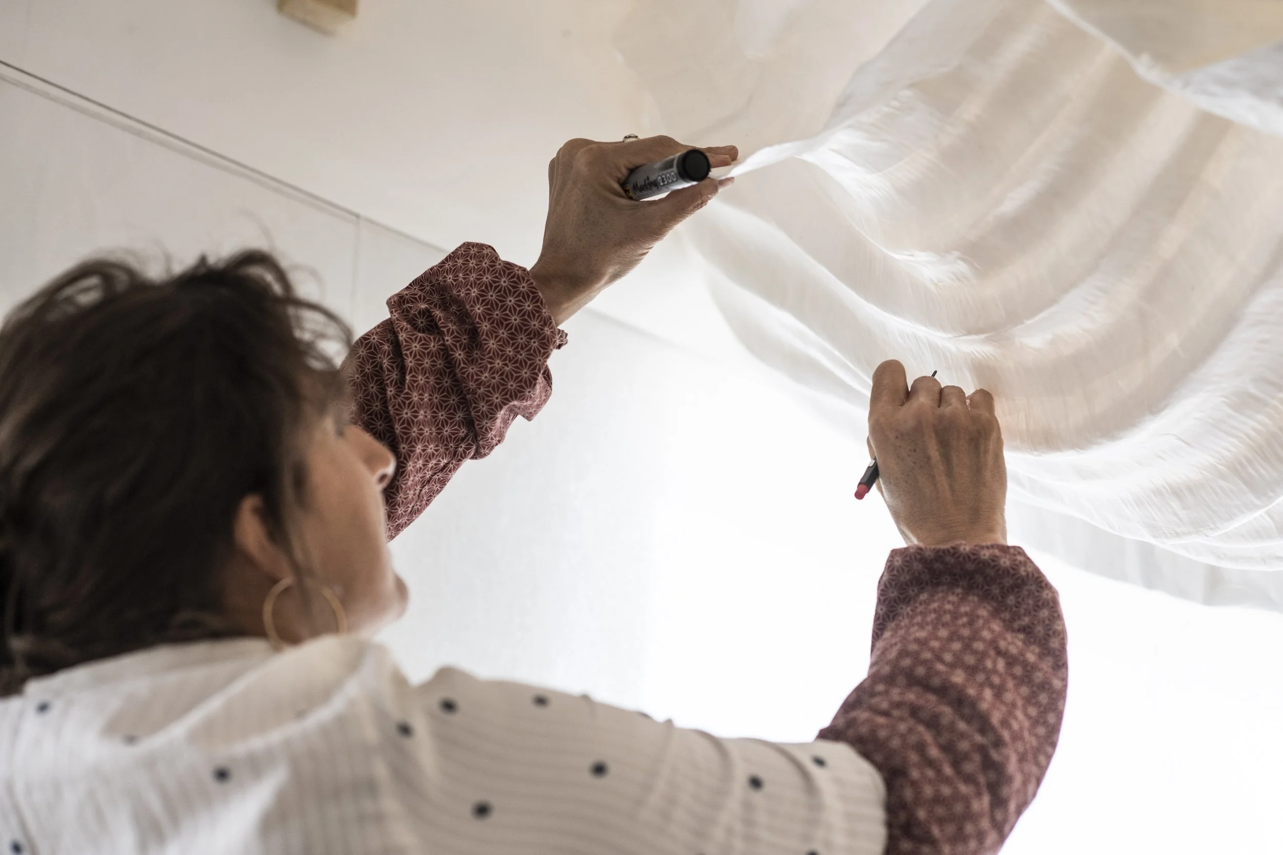 Each custom project begins with an in-depth study. Céline first develops a scaled model, refining proportions and movement until the dialogue between space, light, and material feels exact. Once the case study is complete, she hand-shapes molds that guide the washi paper into its final form — a slow, deliberate process culminating in a breathtaking, sculptural presence.