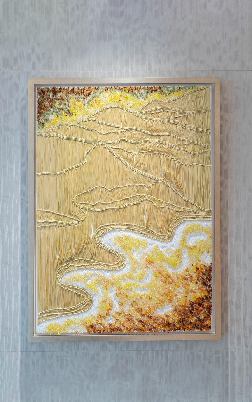 Displayed within the Cartier boutique in Bordeaux, the work translates geological movement into a tactile, poetic language.