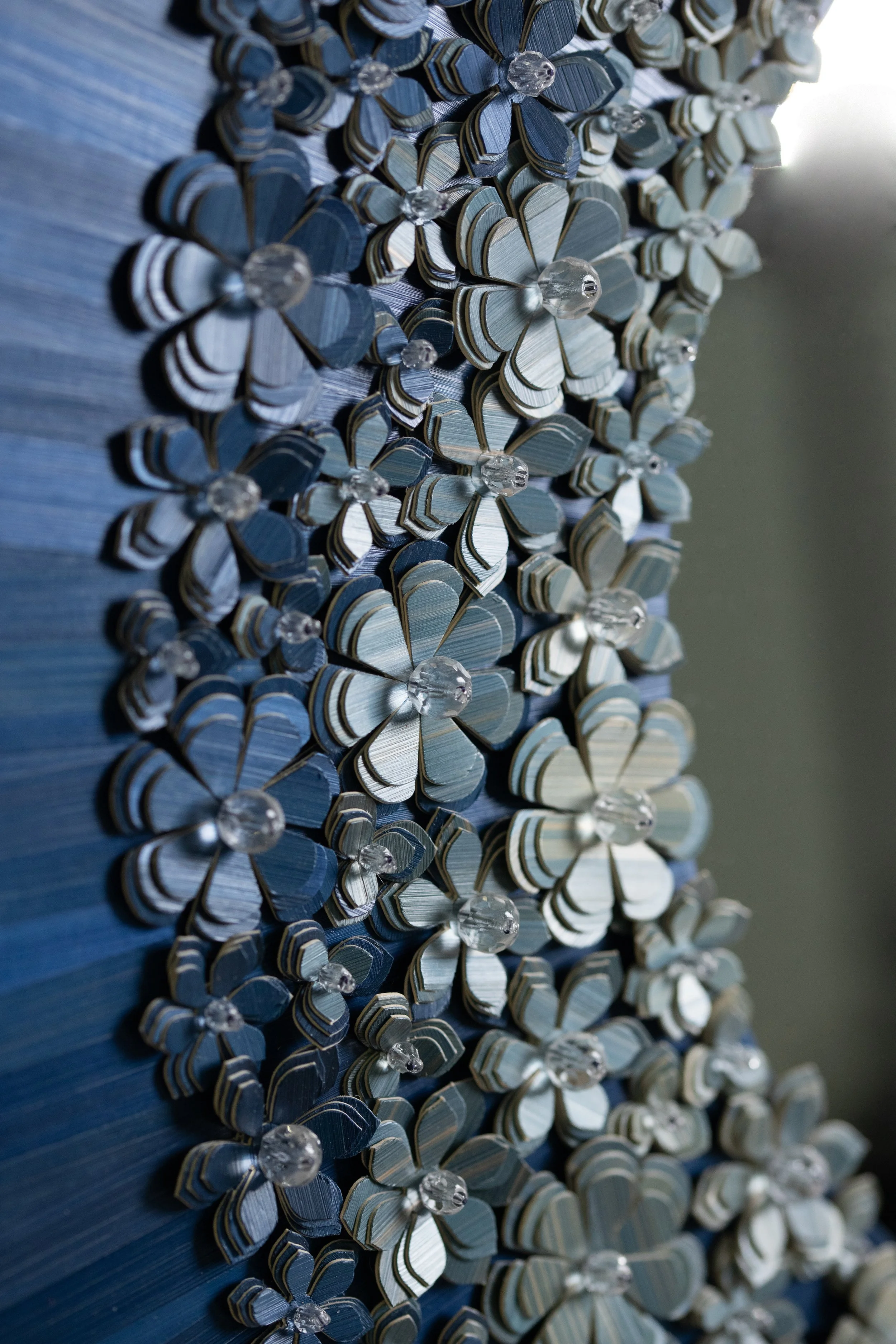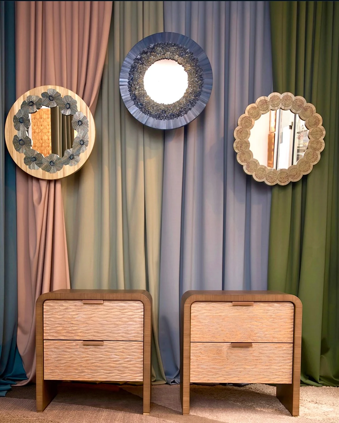 Each piece is the result of meticulous gestures, where straw is patiently selected, oriented, and assembled to capture light, before being adorned with embroidered details that introduce texture, rhythm, and emotion. The mirrors transcend their functional purpose to become objects of contemplation—works of art that carry the memory of time, the intelligence of the hand, and the continuity of craftsmanship passed down through generations.