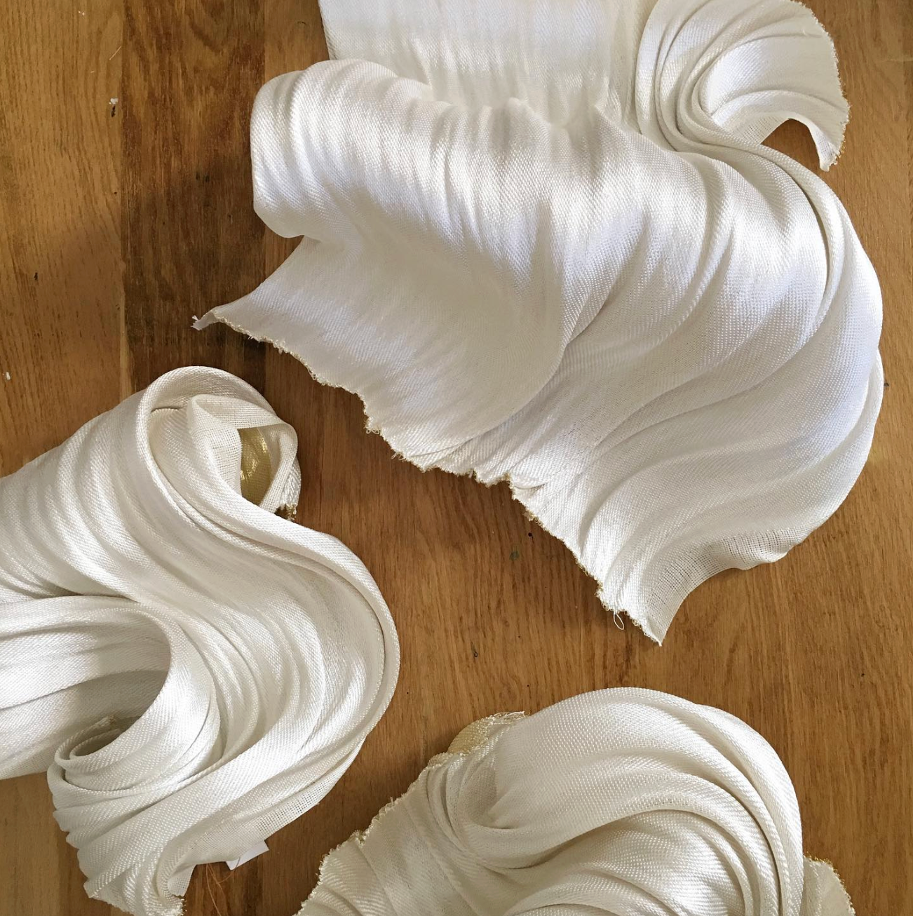 Developed as a sculptural textile artwork, Morgane’s woven piece was conceived independently as an artistic form, then integrated into a couture silhouette. Her silk and brass weavings introduced volume, structure, and luminosity — transforming the garment into a statement of material mastery.